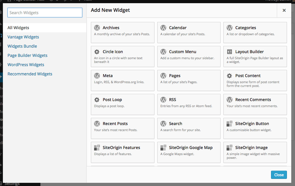 - Page builder by site origin-Page Builder gives you complete freedom to choose any WordPress theme you like. It’s not a commitment to a single theme or theme developer. The advantage is that you’re free to change themes as often as you like.