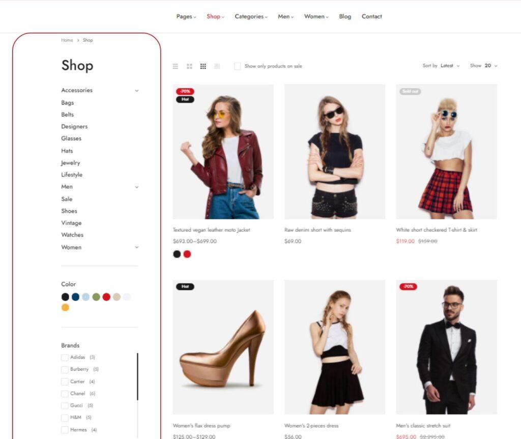 To date, faceted search is the most advantageous search method. It relies on relevant terms and options (color, fabric, price, and more) to narrow shoppers’ search results. Apart from being convenient for users, the faceted search system can inform customers about the products they are searching for.