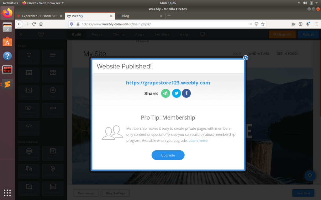 1. Create your website in Weebly and keep your website URL of your Weebly site handy. in this demonstration we would create a website called grapestore123.weebly.com or you can have your domain name.