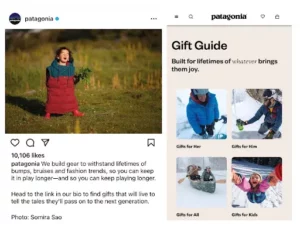 So, ensure that you maintain a consistent brand message across your landing page and social media posts. Ensure alignment in word choices, brand voice, and other elements— even visual. For instance, if you look through Patagonia’s social media platforms, you’ll notice that they take an inspiring tone of voice and focus on sending an emotional brand message. The same goes for the landing pages they create.