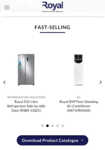 For Royal, we can see that the electronics store has a dedicated landing page aimed at getting leases to download their product catalogue— hence, the call to action is in the example below.