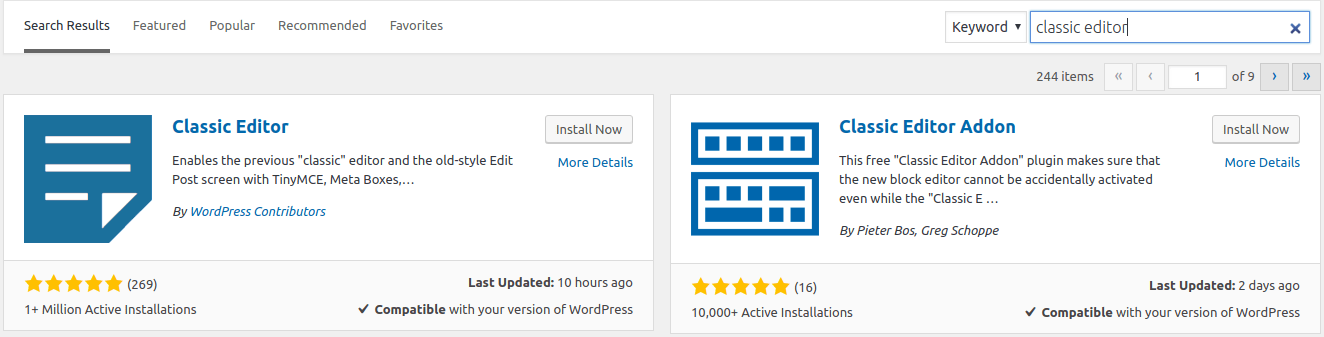 - Install the extension. Link here – https://wordpress.org/plugins/classic-editor/