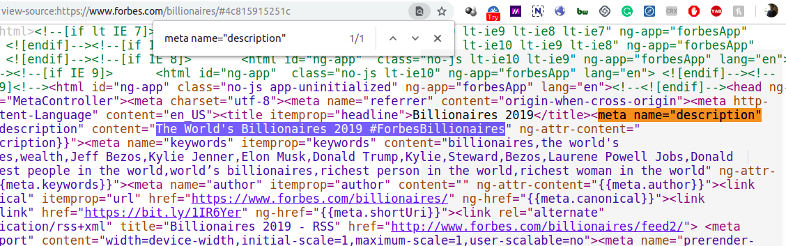 You will see the meta description after content =. In the above image, it is The world’s billionaires 2019″ If you want this text to come in the search description/ snippet,