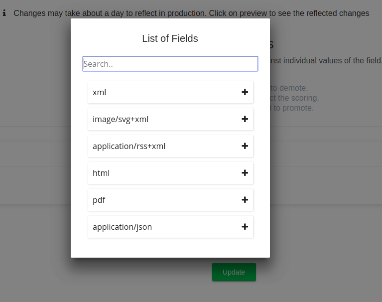 - Choose a boost value- I the below image, PDFs have more priority than HTML which has more priority than general results while XML files have lower ranking compared to general search results