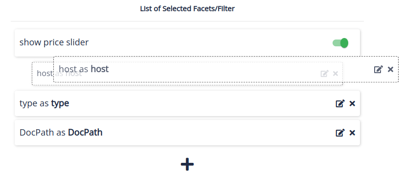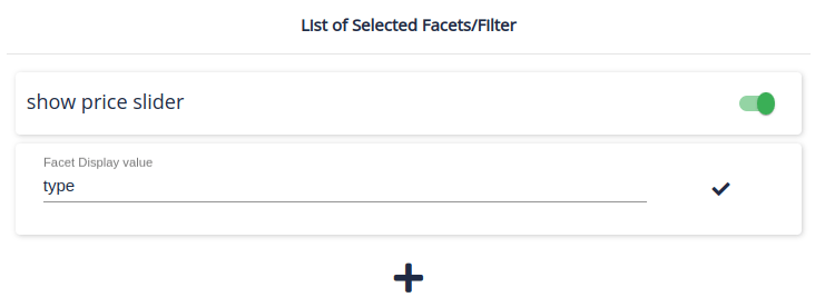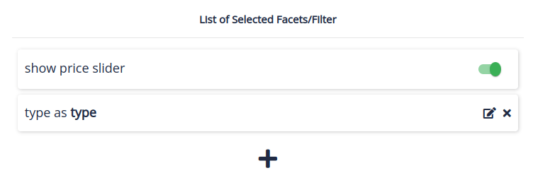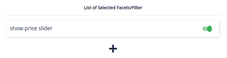 The List of Selected Facets/Filter will contain all the Fields you choose to add to the Facets. The first Grid is the show price slider, which can be enabled/disabled by toggling the switch.