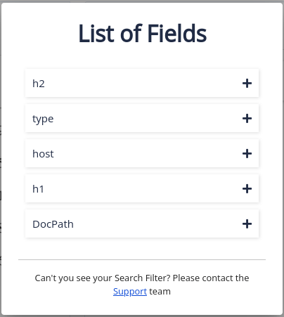The click will trigger a List of Fields dialog that displays all the fields that can be added to the Facet.