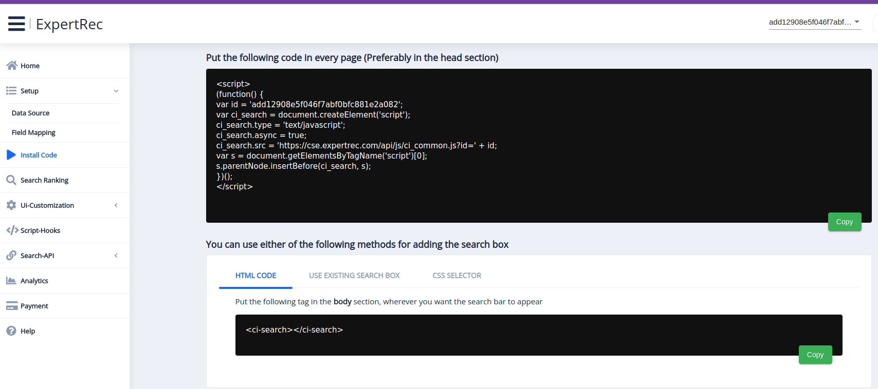 - Add Expertrec Search bar