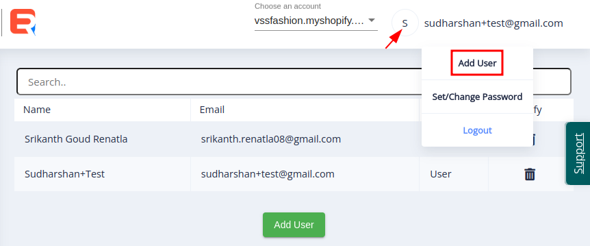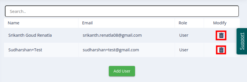 To add a new user to the Expertrec account, navigate to the Manage User section and click on Add User button.