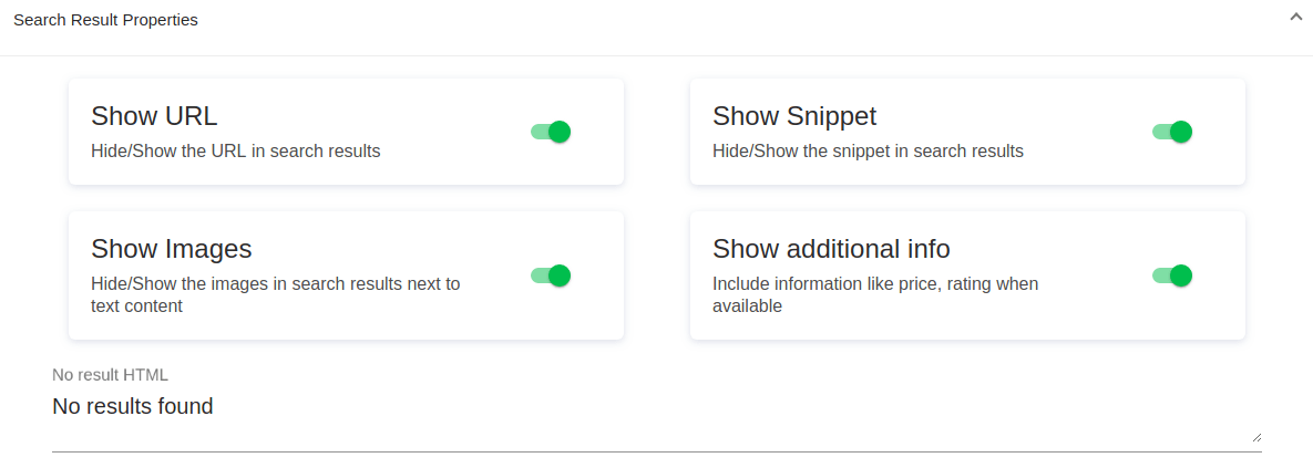 - Show additional info (price, rating, etc – you can turn off pricing/ ratings from appearing in search results)