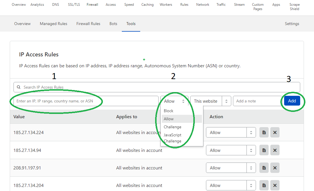 Step 4: Enter ExpertRec Bot’s IP Address in the ‘Enter an IP’ field, select ‘Allow’, and click on ‘Add’.