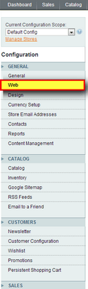 3. From the main menu, under the General list, click Web.