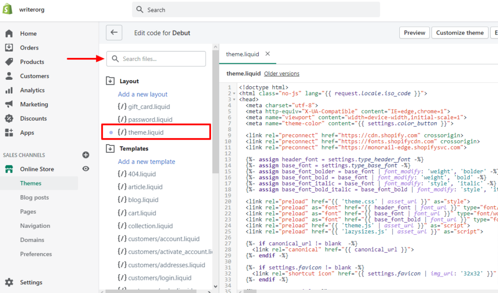 Many Shopify online stores have a separate dedicated section for blogs which is why you might want the search bar ( check custom google widget bar ) of your blog to show only the blog results and not the products to your website visitors. Now to do this there are two ways. You can either edit the “theme.liquid” file or you can put a snippet of code in the page editor. I will show you how to do both.