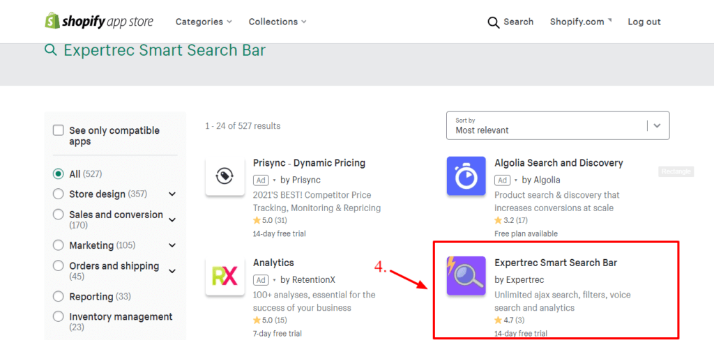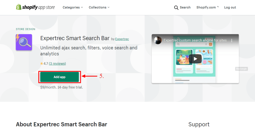 - Install Expertrec Smart Search Bar from the Shopify App Store.