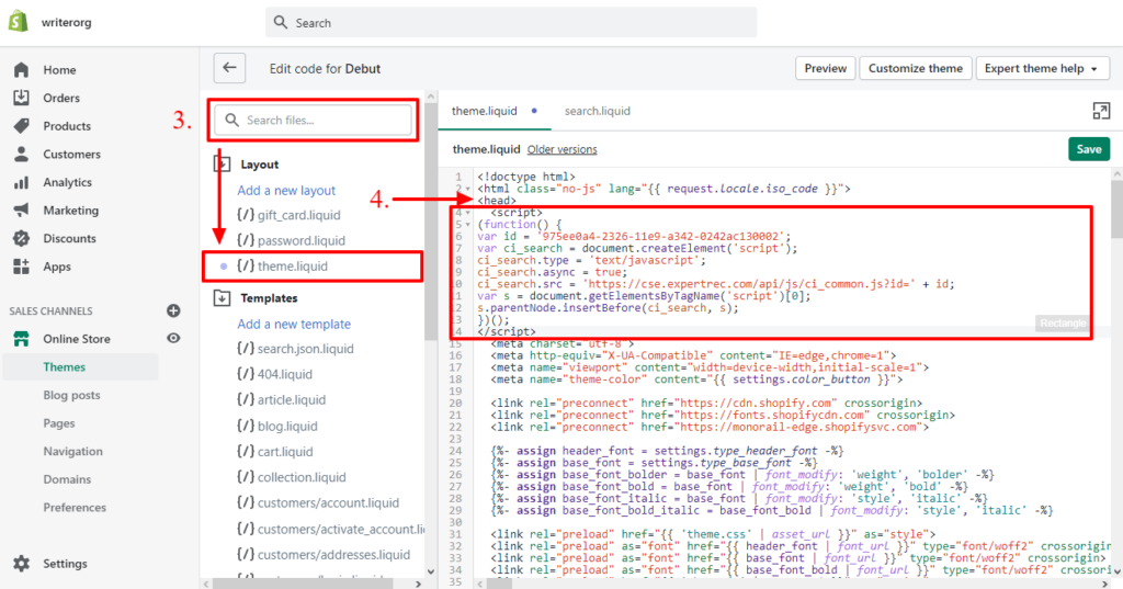 Add Search Bar In Your Shopify Theme Using Expertrec Code Snippet