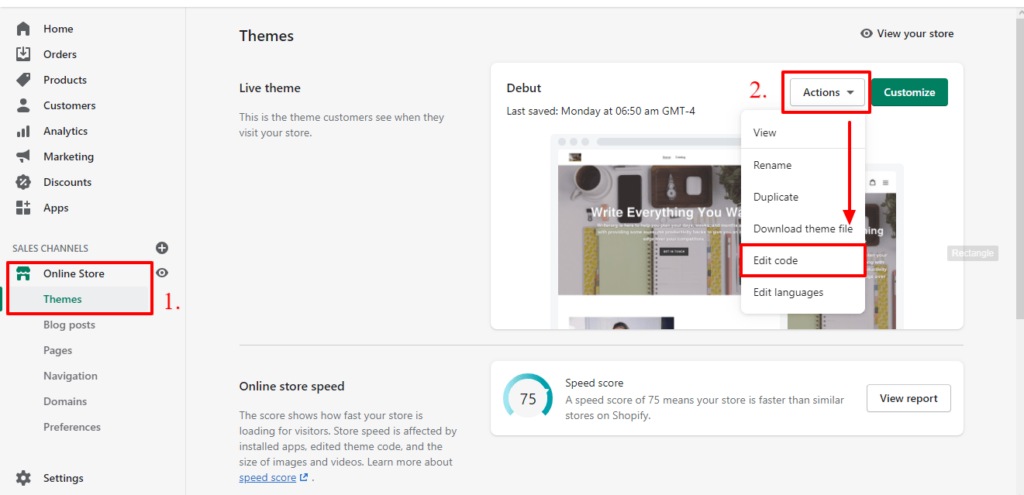 - Open your Shopify admin panel and head to the “Themes” section.