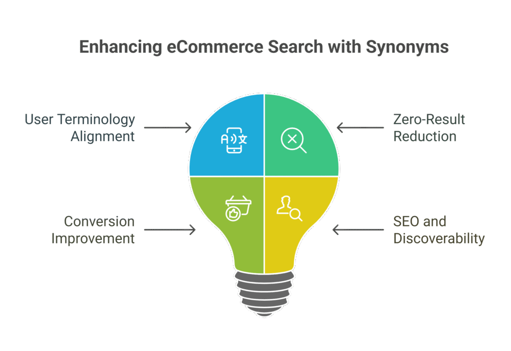 Imagine this: a shopper types “sneakers” on your eCommerce site, but your product listings only say “running shoes.” Or they type “sofa”, while your inventory uses “couch.” What happens? No results. No sale.