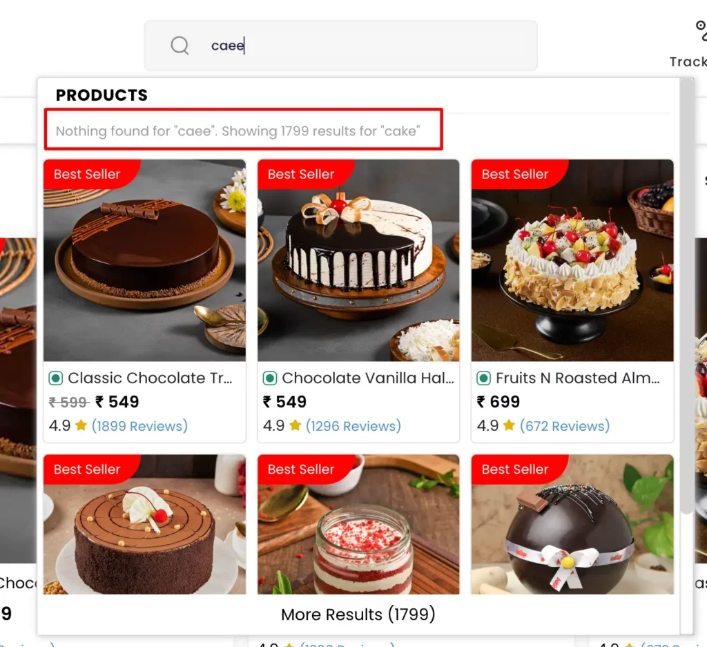 - Synonym matching – Expertrec matches misspelt or partial words to return relevant results. So a search for “tenis shoes” would also show results for “tennis shoes”.