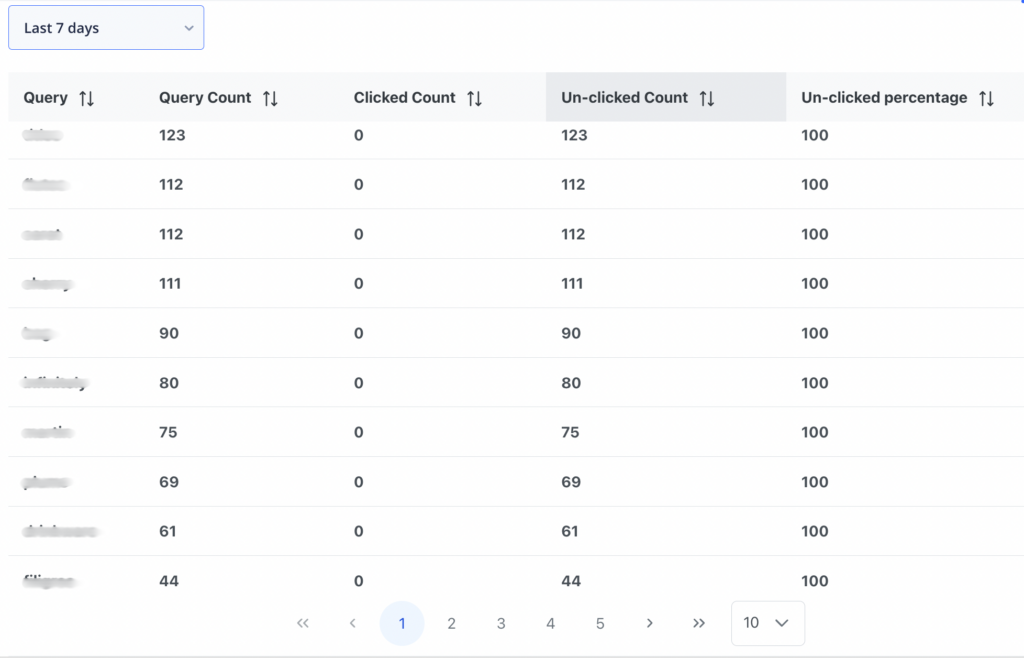 Here’s a snapshot of what the Unclicked Search Queries report looks like. By using this report, you’ll have a clear view of which searches aren’t getting results and can take action to resolve them.