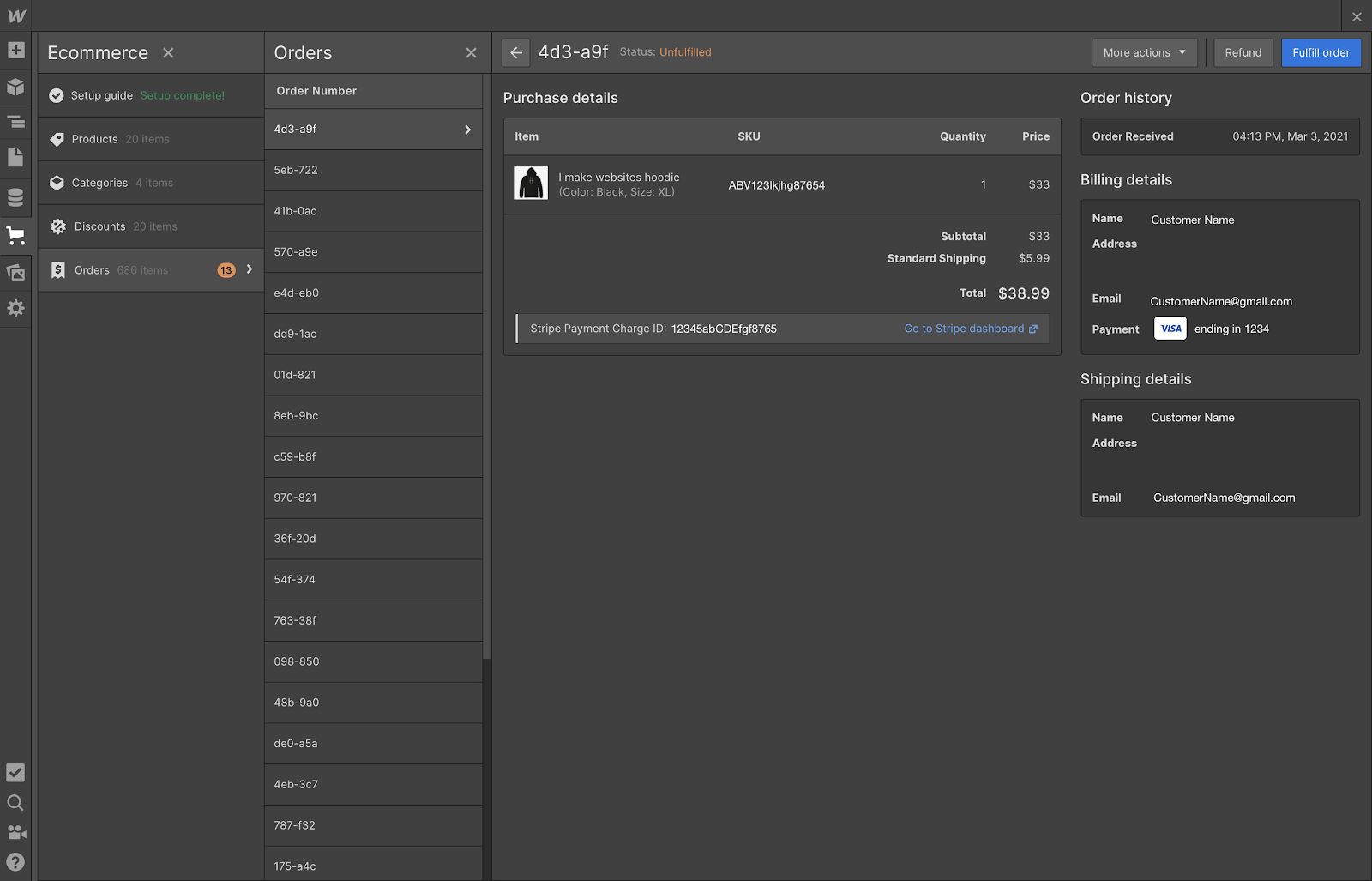 Now when you are getting orders, eCommerce even helps you to process those properly. Orders will be gotten in the Webflow Designer and Editor where you can dive into the subtleties on who requested it, what their location is, and in particular, mark the situation with the request for your following. You’ll likewise help with a warning for new requests through email and in the Designer.