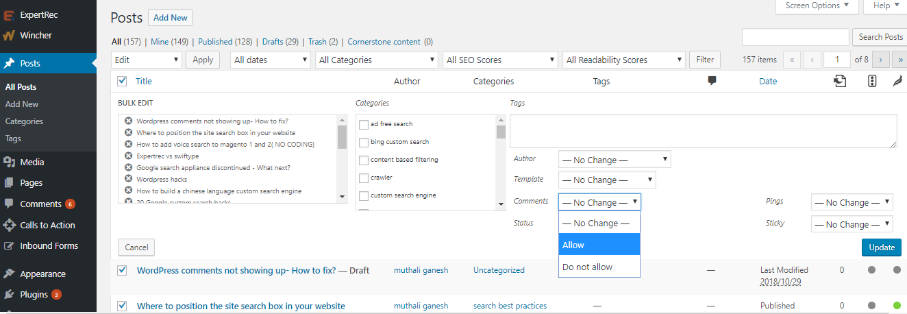 - Do this for other posts as well. (by selecting multiple posts at a time).