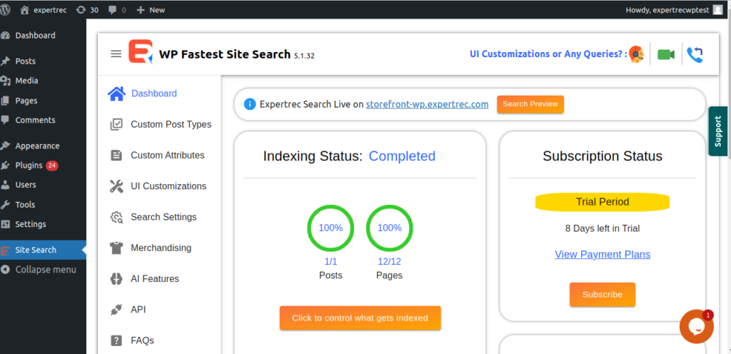 In this case, ExpertRec crawler decides which posts/pages should be added to the index and updates search results accordingly.