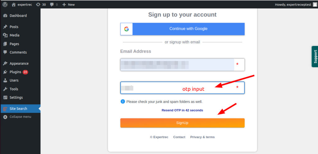 After clicking on “Request OTP”, you will get your otp in the requested email id within 1 minute. enter correct otp and click on signup button.
