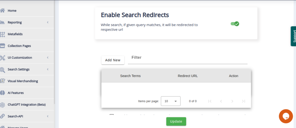 - Search Redirects: While search, if given query matches, it will be redirected to respective url.