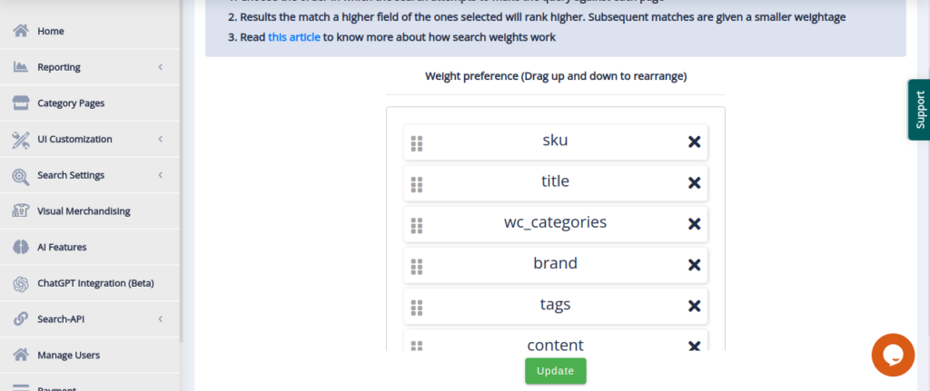 - If you want to prioritise the search result based on search fields associated with search query you can click on Search Weight option . Click on the take me there link of the Search Weight and it will navigate you to the cse dashboard. There you can choose order in which search attempts to make the query.